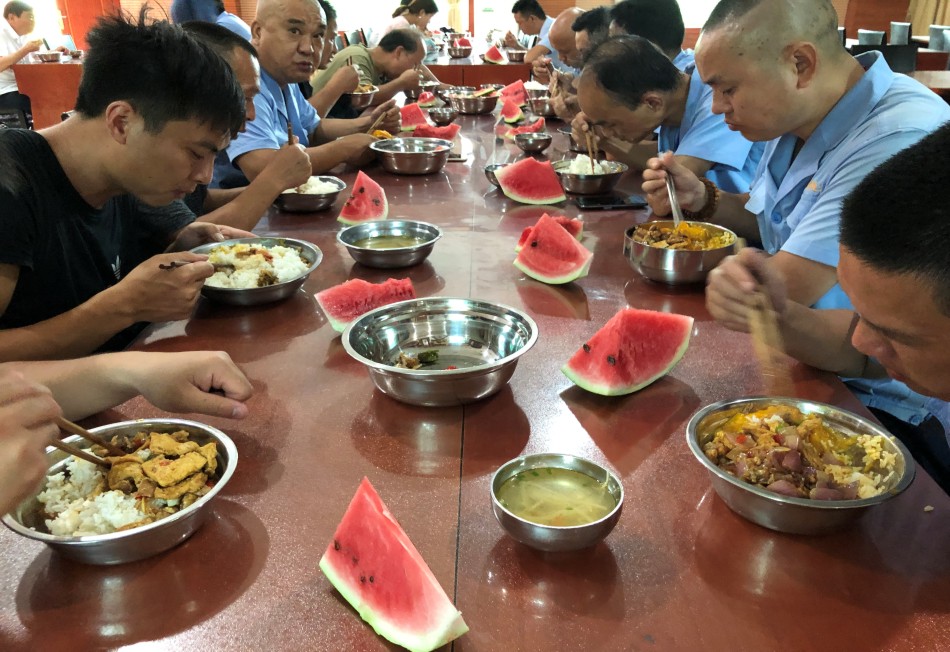在食堂为一线员工准备了西瓜和绿豆汤等食品